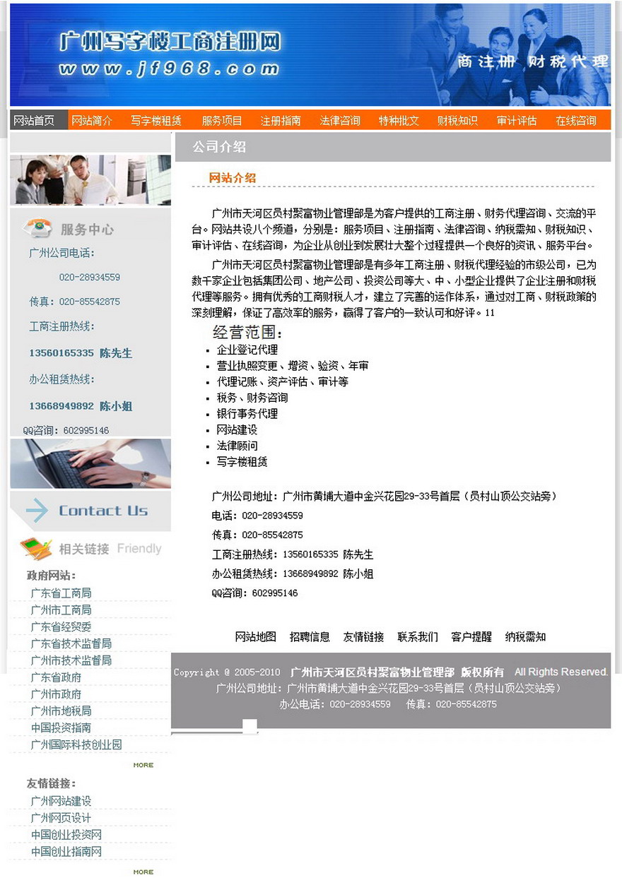广州市天河区员村聚富物业管理部是为客户提供的工商注册、财务代理咨询、交流的平台。网站共设八个频道,分别是:服务项目、注册指南、法律咨询、纳税需知、财税知识、审计评估、在线咨询,为企业从创业到发展壮大整个过程提供一个良好的资讯、服务平台。