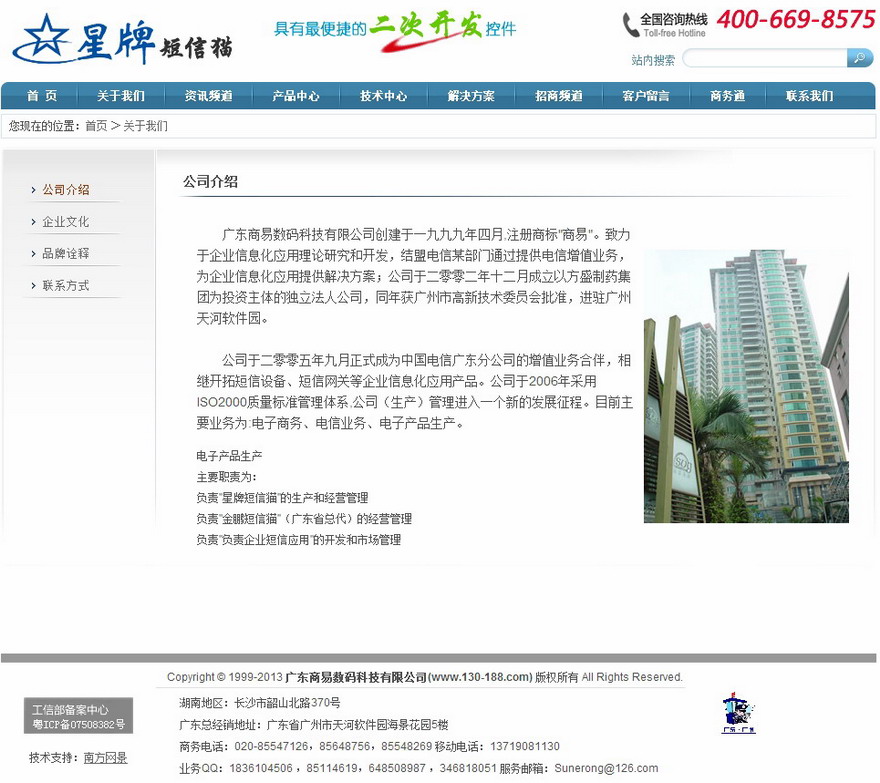 广东商易数码科技有限公司创建于一九九九年四月,注册商标"商易"。致力于企业信息化应用理论研究和开发,结盟电信某部门通过提供电信增值业务,为企业信息化应用提供解决方案。